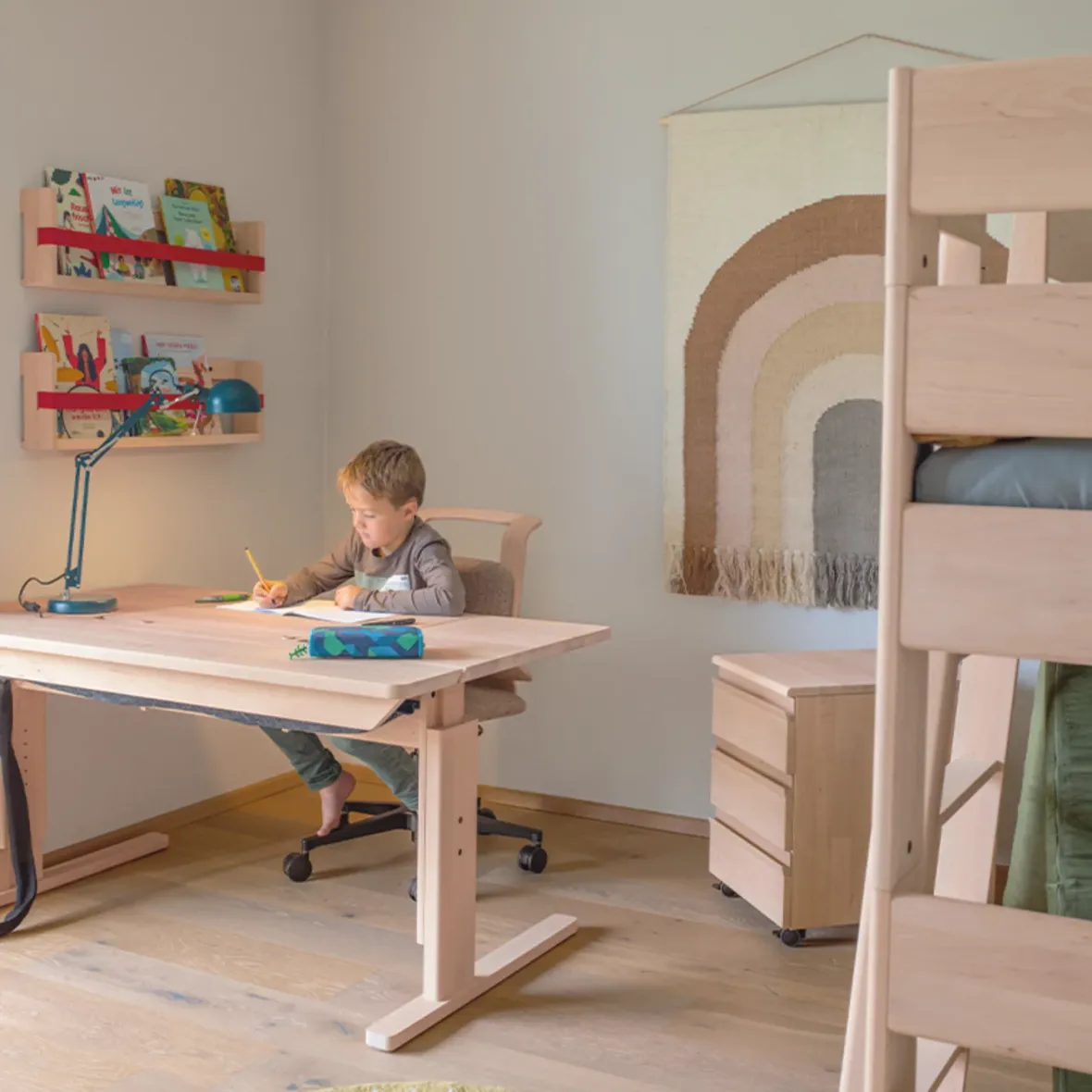 Die formaldehydfreien Verleimungen und natürlichen Oberflächenbehandlungen sorgen dafür, dass Ihr Kind in einer sicheren Umgebung aufwachsen kann, in der keinerlei gesundheitsgefährdende Stoffe verarbeitet sind. Dank durchdachter Konstruktionen mit abgerundeten Kanten und stabilen Verbindungen sind unsere Kindermöbel auch für die alltäglichen Abenteuer Ihrer Kinder besonders sicher und widerstandsfähig.