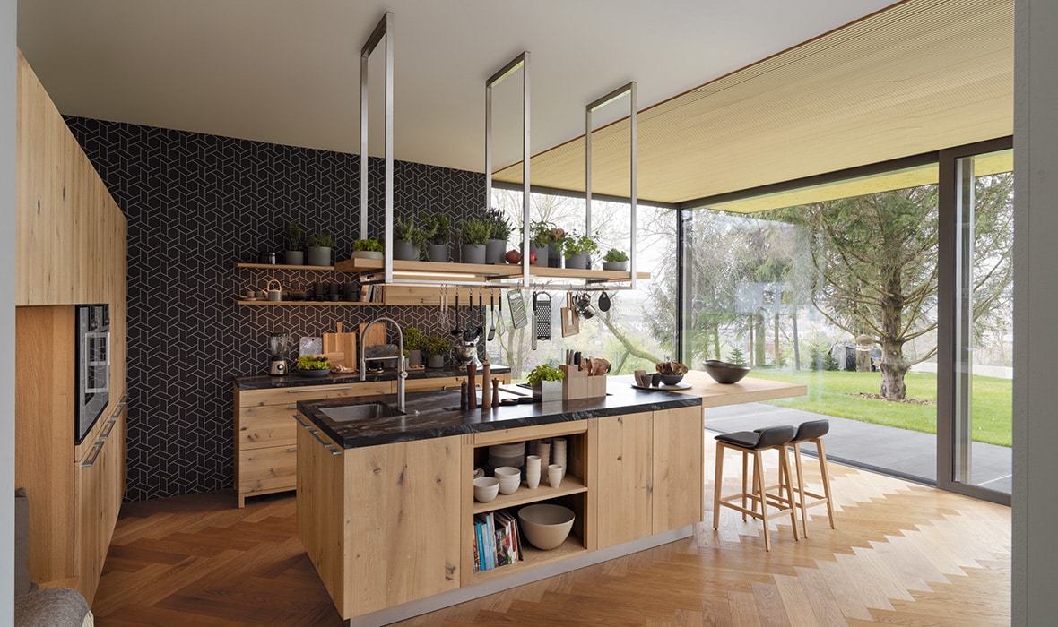 Eine Küche aus Massivholz von Team 7 schafft eine angenehme Wohnatmosphäre und trägt zu einem gesunden Raumklima bei. Das offenporige Holz nimmt Feuchtigkeit auf und gibt sie wieder ab, wodurch ein ausgeglichener Wohnraum entsteht. Durch die ausschließliche Veredelung mit Naturöl bleibt die natürliche Schönheit und Struktur des Holzes erhalten.