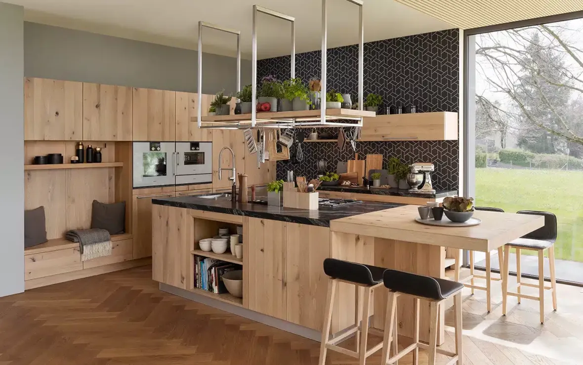 Eine Küche von Team 7 ist eine Investition für die Gegenwart und die Zukunft. Dank innovativer Fertigungstechnologien und traditioneller Handwerkskunst entstehen Möbelstücke, die Jahrzehnte überdauern. Die Kombination aus natürlichem Massivholz, flexiblen Stauraumlösungen und intelligenten Ordnungssystemen macht unsere Küchen sowohl funktional als auch optisch einzigartig.